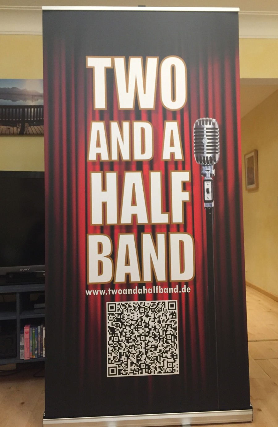 Unser Rollup-Banner für die Bühne ist bei uns angekommen. Vielen Dank an Alexander Freimüller für die Bearbeitung des Fotomaterials. Visitenkarten waren gestern! Scant man den QR-Code vom Banner hat man unsere kompletten Kontaktdaten auf dem Handy.
